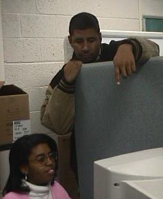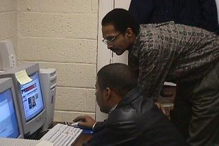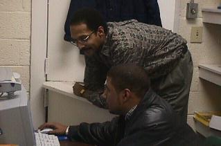 Antinio Rook and Mr. Harris downloading and printing out data dealing with LINUX FIREWALLS
